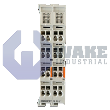 Supply voltage for the EL7201-9014 terminal is 24 Volts DC. The connection to the power supply is available via the power contacts. Range for the supply voltage is from 8 to 48 Volts DC. Output current of the device is 2.8 Amps and the peak current is 5.7 Amps for one second. A fan cartridge can be used for performance improvement. With this cartridge, the output current increases to 4.5 Aps and the peak current to 9 Amps for one second. The PWM clock frequency is 16 kilohertz and the rotating field frequency range is 0 to 599 Hertz. The terminal provides 24 Volts DC output for the motor brake and up to 0.5 Amps current. Frequency of the current controller is 32 kilohertz and the frequency of the speed controller is 16 kilohertz. Weight of the EtherCAT terminal is approximately 60 grams.