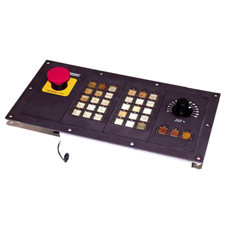A: The rotary encoder in this panel enables real-time spindle speed and axis override adjustments. This allows operators to fine-tune machine performance during runtime.