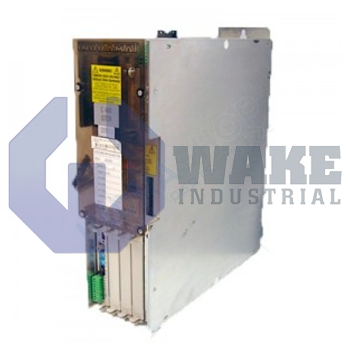 The DDC01.1-F100A-DA07-00 is a digital servo drive. It designed for control of Rexroth MDD series servo motors. A configured drive controller with a digital MDD motor creates a system configuration. The DDC01.1-F100A-DA07-00 is a liquid cooled servo drive. Current rating of the AC drive is 100 Amps and its configuration designation is DA07-00. An alphanumeric status indicator is provided on the drive front panel. This two-digit seven-segment indicator is used for displaying operating status of the drive, motor faults, cable / conductor faults, faults caused by invalid parameters and improper use. Also available on the drive font panel is a 34-pin connector for programming unit connection and a RS-485 / RS-232 interface for serial connections. The drive is compatible with three-phase 380 to 480 Volts AC input (50 / 60 Hertz). Compact housing of the drive combines mains rectifies and drive controller in a single unit.