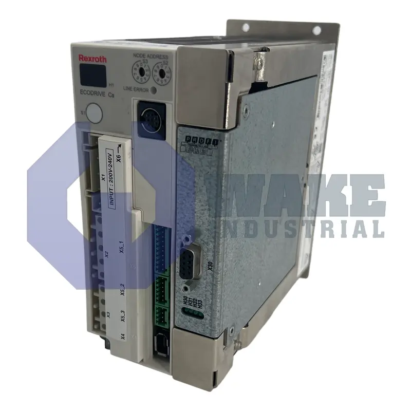 The model DKC10.3-012-3-MGP-01VRS is a servo drive controller part of Rexroth's EcoDrive DKC series. This controller operates with a three-phase input and can handle an input voltage range of 200 degrees CE" 240 V. It supports frequencies of 50/60 Hz and features a connected load capacity of 1.2 kVA. It is equipped with a soft-start resistor (RDC) rated at 4.7 Ohms and 17 W which helps manage power surges during startup. The continuous input current varies depending on the voltage, with a maximum of 2.2 A at full load. The controller also supports selectable switching frequencies of 4 or 8 kHz that ensures flexibility in its operation. The maximum inrush current of the controller is dependent on the supply voltage, and the power dissipation is 34.5 W. The model has an inrush current of 37.5 A and a maximum allowed undervoltage of 264 V AC.