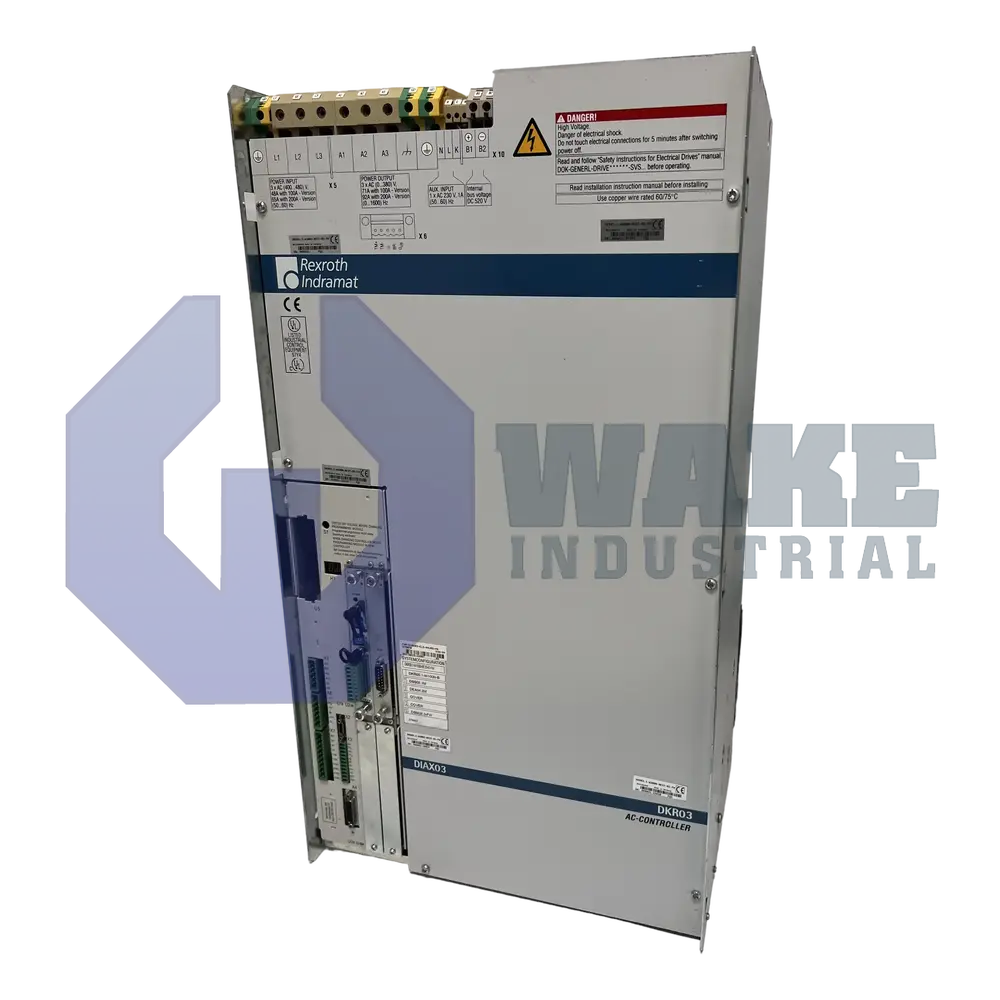 The DKR series drive controller uses a built-in blower for cooling and can operate in ambient temperatures ranging from + 5 degrees C to + 45 degrees C. The maximum permissible ambient temperature is + 55 degrees C with a derating of nominal data to 80 % when required. The model weighs approximately 49 kg. The drive controller is engineered for use in industrial environments up to 1000 m above sea level. The device features a protection rating of IP20 per EN60529 standards that ensures safety in indoor applications. The auxiliary brake resistor of the drive controller can handle up to 150 kWs of braking energy for added safety in dynamic braking scenarios.