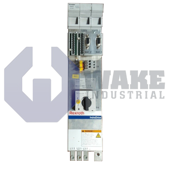 HNS Servo Drive manufactured by Bosch Rexroth Indramat. This drive has a main connecting voltage of 480V, and a nominal current of 23A. This drive also has an input voltage of 380V and an output voltage of 380A.