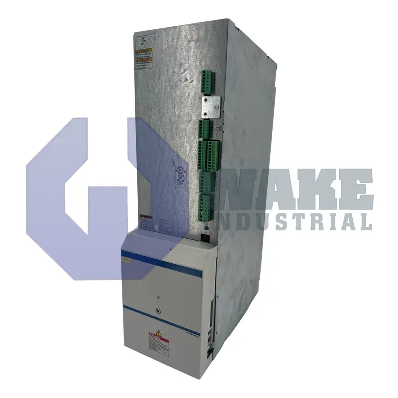 The HVE03.2-W030N operates with an input voltage range of 380 to 480V AC to provide a DC bus voltage between 531 and 670V DC. The supply unit delivers a continuous power output of 30 kW, suitable for systems that demand steady performance. The power supply unit features internal air cooling that includes a built-in blower to ensure optimal thermal management during operation. The power supply unit supports a frequency range of 50-60Hz with a tolerance of +/- 2Hz and operates at temperatures between 5 degrees C and 45 degrees C. For applications requiring rapid acceleration, such as spindle and feed drives, the power supply unit can handle up to 10mF of additional DC bus capacitance. This allows for short-term power boosts, enhancing overall system performance. The supply unit also integrates with the GLD DC bus choke for increased continuous power output.