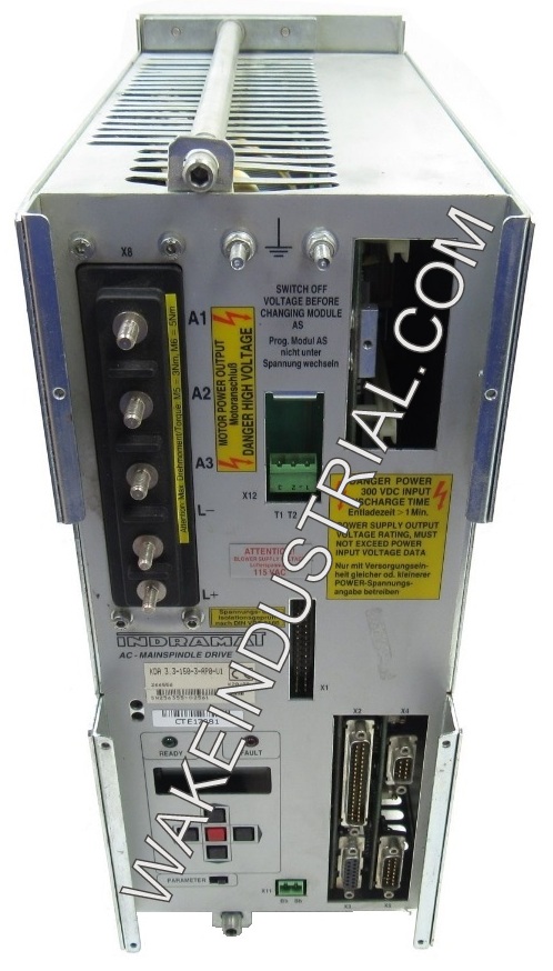 The KDA 3.1-150-3-A0S-W1 spindle drive is air-cooled, supports three axes, operates at a rated current of 150 amps, and offers a power supply frequency of 50/60 Hz. Part of the KDA Spindle Drives series by Bosch Rexroth Indramat, it features digital microprocessor control and IP20 enclosure protection.