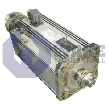 MAC Permanent Magnet Motor manufactured by Bosch Rexroth Indramat. This motor has a power connecter on Side A. This motor also includes a Standard Mounting encoder and a Heavy Duty blocking brake.