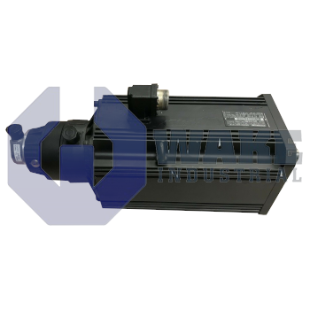 MAC Permanent Magnet Motor manufactured by Bosch Rexroth Indramat. This motor has a power connecter on Side B. This motor also includes a Incremental Encoder with Standard Mounting encoder and a Not Equipped blocking brake.