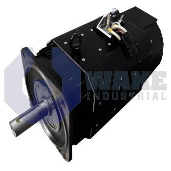 This motor is quite well controlled, and provides information on its condition and rotational speed through a single turn absolute value encoder. It is characterized with a speed capacity of 1500 revolutions per minute and has internal windings with two poles. The motor delivers a decent power with a torque of 215 Nm and the motor takes a current of 75.3 A. With a rated speed of 1500 rpm it has a good rated power of 33. 8 kW. This motor has an axial fan blower for the purpose of cooling as seen from the following figure. This model has flange mounting to make it easy for the user when mounting it. Also, this model does not have a holding brake integrated in its structure.