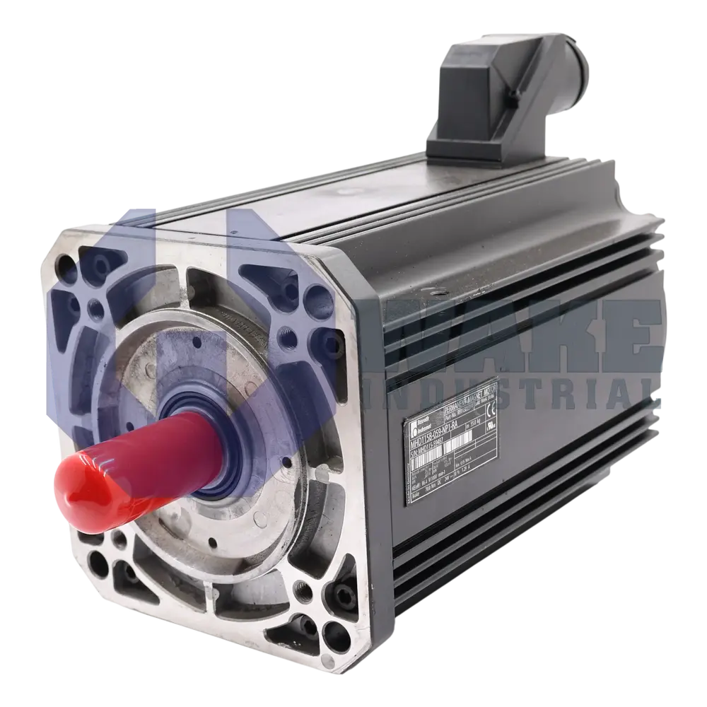 The MHD115B-059-NP1-RA Magnet Motor is manufactured by Rexroth Indramat Bosch. This motor has a Winding Code of 59 and has a Digital Motor Encoder. The Driven Shaft for this motor is With Key and it is Equipped with a holding brake.