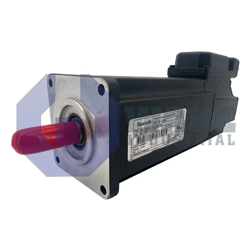 During transportation provide shock-absorbing supports since it is sensitive to strong impacts and vibrations. When mounting the MKD041B-144-KG0-KN use 4 x M6 screws, 10.4 tightening torque, and a minimum strength of 8.8. To ensure optimum performance, you should clean the bearing and cooling ribs of the motor. Excessive shavings, dirt, and dust affect the overall performance of the motor. Dirt can impact heat dissipation which causes overloading. The Rexroth synchronous motor conforms to CE and is UL recognized.