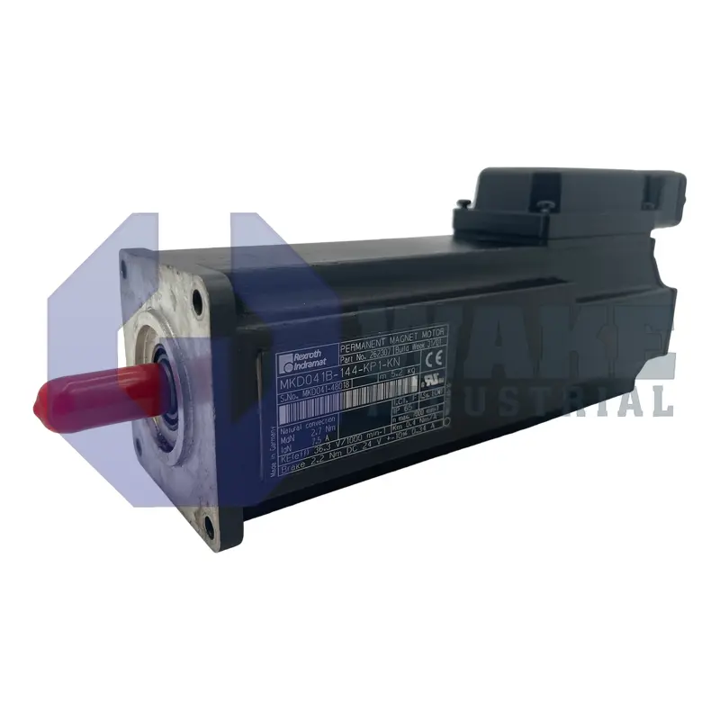 MKD041B-144-KP1-KN is an industrial servo motor. It is designed and manufactured by Bosch Rexroth. The motor is part of the MKD series. MKD motor features are highly optimized for demanding industrial applications. Permanent magnets used for MKD motor construction allow development of motor with low inertia, which enables fast acceleration and deceleration and reduced energy consumption. MKD motors support electronic commutation for high reliability which also enables continuous start-stop operation. Effective heat dissipation enables high overload capacity. Integrated temperature monitoring helps to prevent overload damage. The rotor shafts on MKD motors are equipped with a shaft seal that helps to retain lubricants, such as oil or grease and prevents external contaminants, such as dust, water, and debris, from entering the motor housing. The MKD041B-144-KP1-KN motor is equipped with a resolver for feedback.