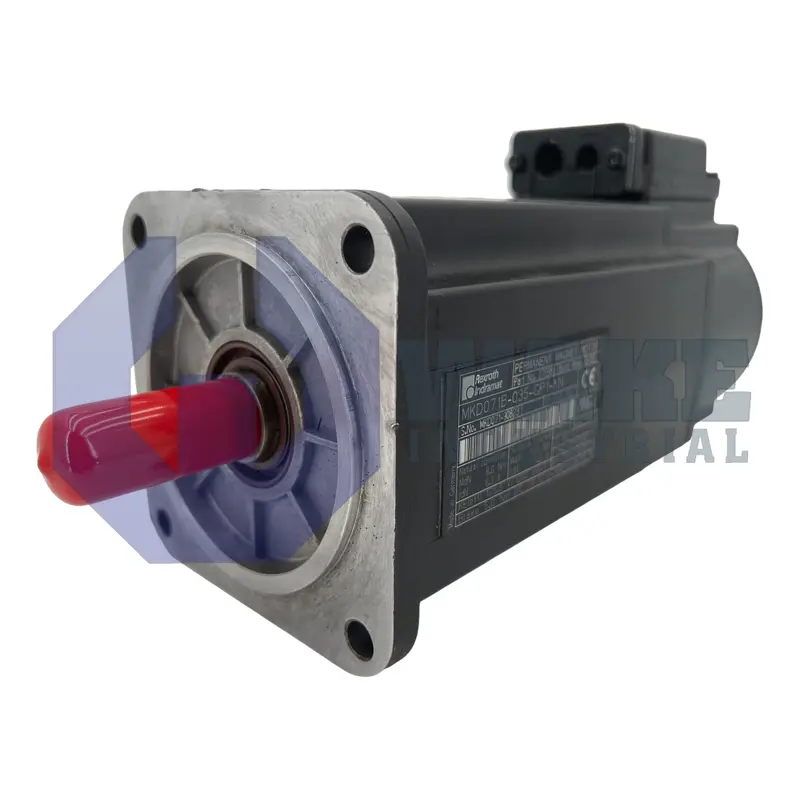 The MKD071B-035-GP1-KN is a synchronous motor with a peak torque of 105 Nm and a rated speed of 4500 RPM. Manufactured by Bosch Rexroth Indramat, this motor is part of the MKD Series and has a motor feedback type of resolver feedback. It features an IP65 degree of protection, 31.9 A max current, and weighs 15.4 kg.