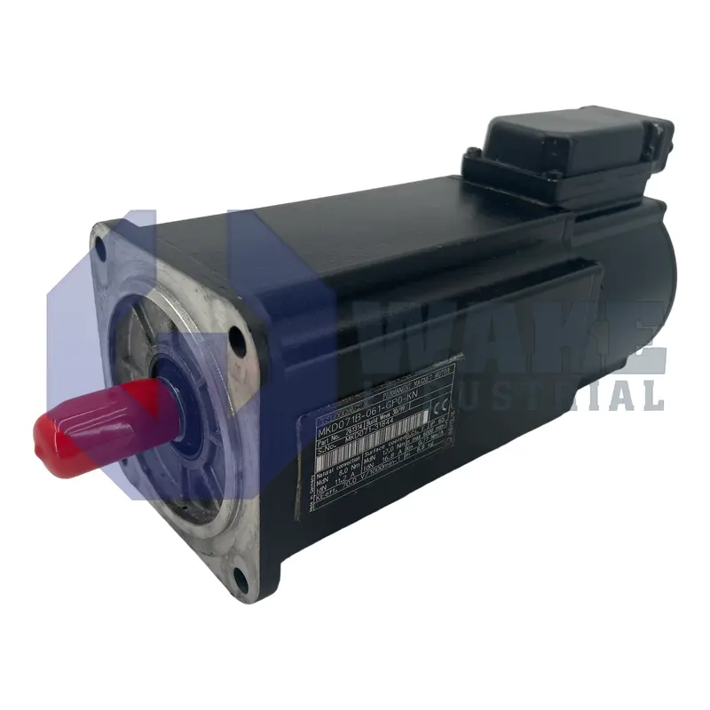 MKD071B-061-GP0-KN is a servo motor. It is manufactured by Bosch Rexroth. The motor supports resolver feedback. It is deployed in combination with a motor controller. The controller supplies motor power via a dedicated power cable. The controller receives feedback from the motor and adjusts its output to ensure motor speed and position match programmed values. MKD motors have either plain shafts or shafts with a key. The shaft on the MKD071B-061-GP0-KN motor has a key and complies with DIN 6885-1 requirements. A shaft seal is installed on the motor for ingress protection. MKD motors have IP65 rated housings for robust ingress protection. These housings are completely dustproof and are also safe from water directed at them from low-pressure water jets. MKD motors deliver rated output when the ambient temperature is between 0 and 40 degrees Celsius.