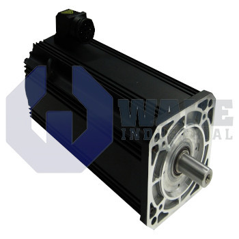 This motor must be provided with appropriate shock absorbers during transport. The device is equipped with a smooth shaft that has a smooth shaft sealing ring and features a multi-turn absolute Endat2.1 optical encoder with 2,048 increments. It has a sound pressure level of 61.1 (+/-3)dBA and thermal time constant of 90 minutes. The unit also encompasses a winding resistance of 0.350 Ohms at 20°C. The position and speed of the synchronous device can be controlled using the encoder. The motor incorporates flange type mounting with M12 x 40 screws on 40mm diameter mounting holes.