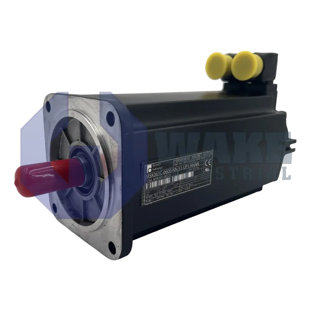 The MSK061C-0600-NN-S1-UP1-NNNN is a best-in-class industrial servomotor designed by Bosch Rexroth Indramat. This unit has a sound pressure level of ~75 dB(A). The winding inductivity of the motor is 6.7 mH. The ambient operating temperature of the model is 0 to 40 °C.
