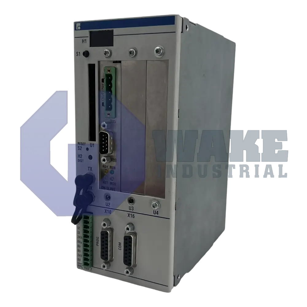The PPC-R02.2N-N-V2-NN-NN-FW is a general-purpose controller from Bosch Rexroth Indramat designed to work as a PLC or an NC controller, based on the application and the loaded software. This controller must be properly grounded for safety reasons. Its Sercos interface allows communication with up to 40 drives.