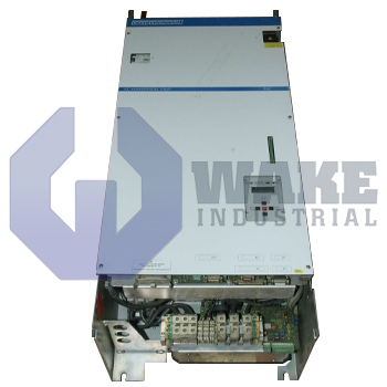 Input rating of the RAC 2.2-200-380-API-W1 is 400 Volts AC (three-phase, 50 / 60 Hertz). The controller current rating is 300 Amps. Motor features include analog speed set point (±10V), internal cooling fan, additional interface for incremental encoder output and additional encoder input for spindle feedback or second motor feedback. Additional bleeder is not available on the RAC 2.2-200-380-API-W1. The controller is programmed via the AS programming module which plugs into the controller and adapts the controller to the spindle motor. The AS programming module is offered by Indramat with each spindle drive. The drive software contains drive-related and application-related parameters. The drive-related parameters affect the drive’s operating characteristics and the application parameters affect the functions of the spindle drive. Input and modification of parameter values is performed through keypad provided on the controller control panel. This unit can be shipped globally with a one-year warranty period from Wake Industrial.