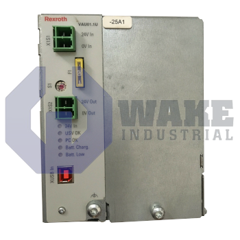 VAU01.1U-024-024-240-NN is a VAU series Uninterruptible Power Supply Unit Manufactured by Bosch Rexorth. This unit operated with 24 V DC input and output voltage, current consumption of 12 A, and max current output of 10 A.
