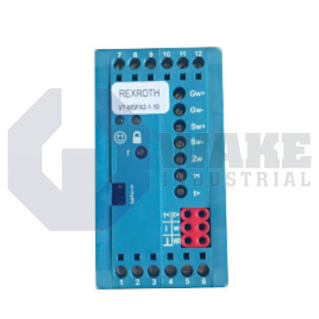 The VT-MSPA2-1-10-V0-0 amplifier module is manufactured by Bosch Rexroth Indramat. This unit weighing 0.14 kg operates with 24 VDC supply voltage, ~ 48 VA power consumption, and ~ 2 A current consumption.