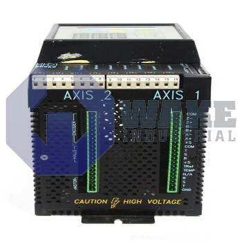The B8962 is a dual-axis smart servo drive. It has two axes of independently configurable amplifiers. It is manufactured by Industrial Devices Corporation (IDC). The drive comes with a FP220 front panel which supports both programming and input functions and includes a 40-character display. Input power specifications for the B8962 are as follows: 90 to 240 Volts AC (single-phase) input at 50 / 60 Hertz, 2300 peak power input at 230 Volts AC and 1150 VA peak power input at 115 Volts AC. Specifications for motor output are as follows: continuous current at 5 Amps and peak current at 10 Amps. The motor output on the B8962 is protected against phase-to-phase short circuits and short circuits to ground. The motor output on the drive is fused.