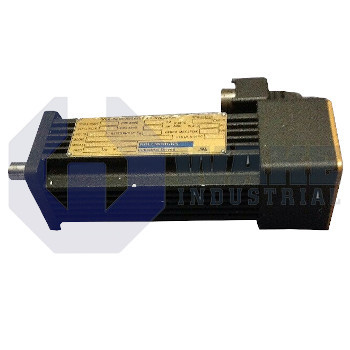 The B-104-B-32 brushless servomotor has a length of 213.7 mm excluding the length of the exposed shaft. The housing of the servomotor offers IP65 protection and features two angular connectors on top. One of the connectors is meant for connecting the frameless feedback resolver, while the other one is meant for 230-V power supply. The B-104-B-32 brushless servo features a shaft with a keyway to ensure a smooth transfer of power, torque, and speed. The motor’s rotor features a rare-earth magnet that produces a high amount of power. The servomotor has a rated power up to 2.0 HP and a rated speed of 7500 RPM. Even under high temperatures, the motor delivers exceptional performance thanks to H-class insulation that can withstand up to 150 degrees Celsius.
