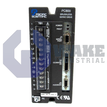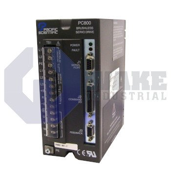 PC/PCE800 Series Servo Drive manufactured by Pacific Scientific. This Servo Drive features a Power Level of 2.7A RMS cont. @ 25-40 degrees C, 5.3A RMS peak along with a Command Interface Designation of RS-232/485, +/-V dc, Step/Dir., Indexing.