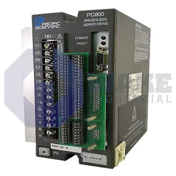 PC/PCE800 Series Servo Drive manufactured by Pacific Scientific. This Servo Drive features a Power Level of 3.6A RMS cont. @ 25-40 degrees C, 10.6A RMS peak along with a Command Interface Designation of RS-232/485, +/-V dc, Step/Dir., Indexing.