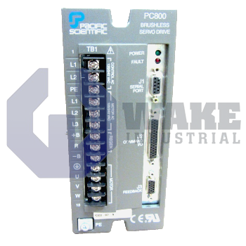 The PC833-XYZ-T is an all-digital brushless servo drive capable of delivering 3.6A RMS continuous output current at 25-40°C. Designed by Pacific Scientific as part of the PC800 - PCE800 Brushless Servo Drives series, it supports RS-232/485 command interfaces and operates within a 323VAC to 528VAC input range. It weighs 3.6 kg.