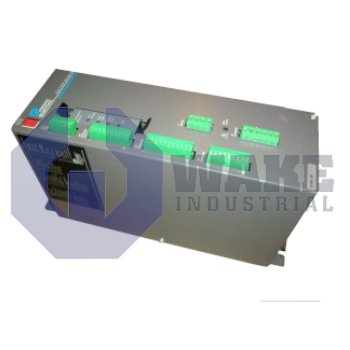 The Pacific Scientific SC722A-001-PM72004 is part of the SC720 Command Controllers series and operates with an input voltage of 115/230 VAC (+10%, -15%). It features a peak output current of 7.5A, a nominal bus voltage of 160/320 VDC, and a feedback option of 12-bit RDC. Weighing 13 lbs, the controller has a full operating temperature range of 0°C to 50°C.