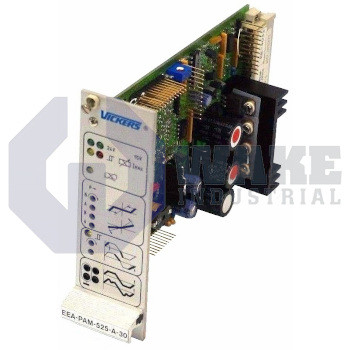 This Vickers EEA-PAM-5**-A-30 power amplifiers series module supports an input voltage range of 20 V to 40 V DC including peak to peak ripple tolerances of ± 10 %. If the voltage drops below 18 V DC, this amplifier shuts down to prevent system malfunction. Reverse-polarity protection safeguards this model against incorrect power connections. The amplifier’s signal source capabilities include ± 15 V at 50 mA maximum for z22 and b22 connections with a peak to peak ripple of 50 mV. For z2 and b2, it supports ± 10 V (± 1 %) at 5 mA maximum with a ripple of 20 mV. This module is engineered to maintain a low temperature drift of less than 1 mV/°C (± 0.5 mV/°F) and operates within a temperature range of 32 °F to 122 °F. The output circuits are short circuit protected that enhances the device's resilience against potential electrical faults.