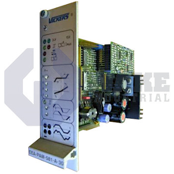 EEA-PAM-581-A-30 Power Amplifier Card Series for Proportional Control Valves manufactured by Vickers. This EEA-PAM-581-A-30 Card is For Proportional Valve KHDG5V-5/7/8 and has a Power (Input) Supply of 24V DC.