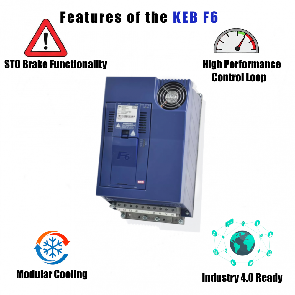 Some notable features of the KEB F6: STO Brake Functionality - Modular Cooling - High Performance Control Loops - Industry 4.0 Ready.